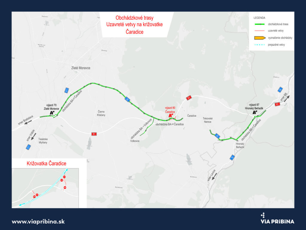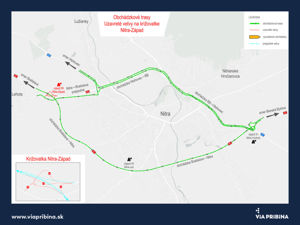 Z dôvodu výmeny asfaltového povrchu s cieľom zvýšiť bezpečnosť premávky a zachovaťvysokú kvalitu infraštruktúry na rýchlostnej ceste R1 Via Pribina dochádza k dočasnýmdopravným obmedzeniam a uzáverám vybraných úsekov.